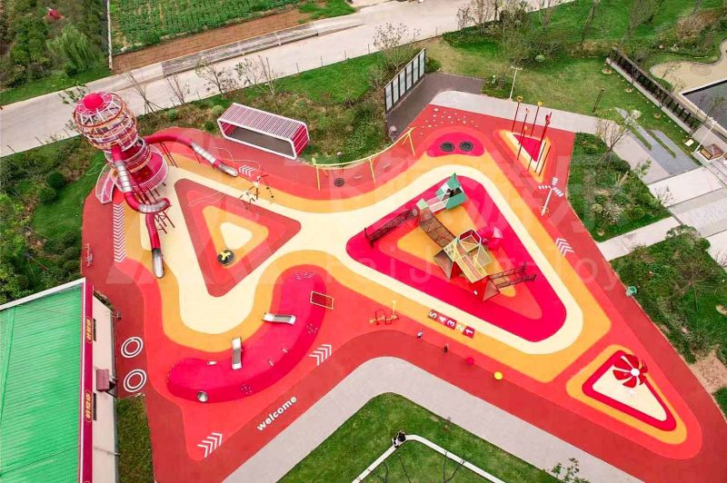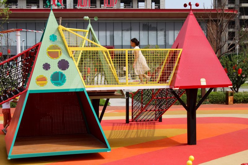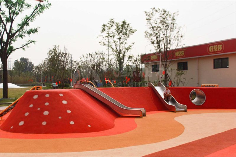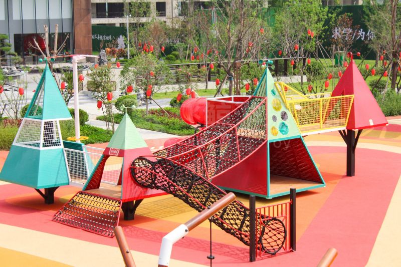 本次项目服务于“好想你”集团打造的全龄主题儿童乐园,乐园以“漫游娱乐,拥抱自然”为主题,树屋、坡地、蹦蹦云,自然与游乐结合,让孩子们亲近自然快乐玩耍。作为儿童友好的游乐空间,娱乐设施结合钻、爬、攀、滑等玩法,既锻炼了孩子的体能和社交能力,又增强了亲子间的互动。
