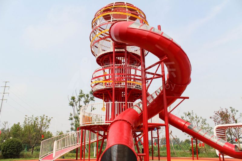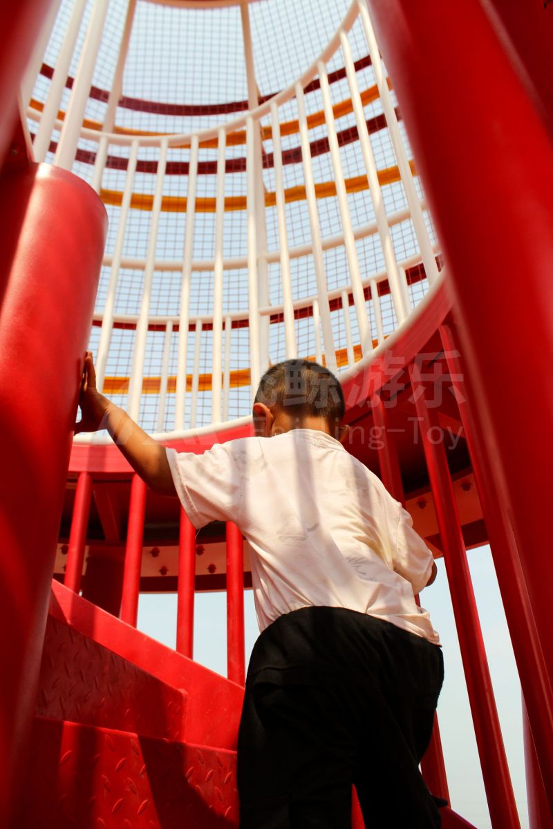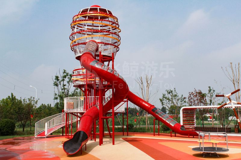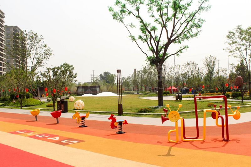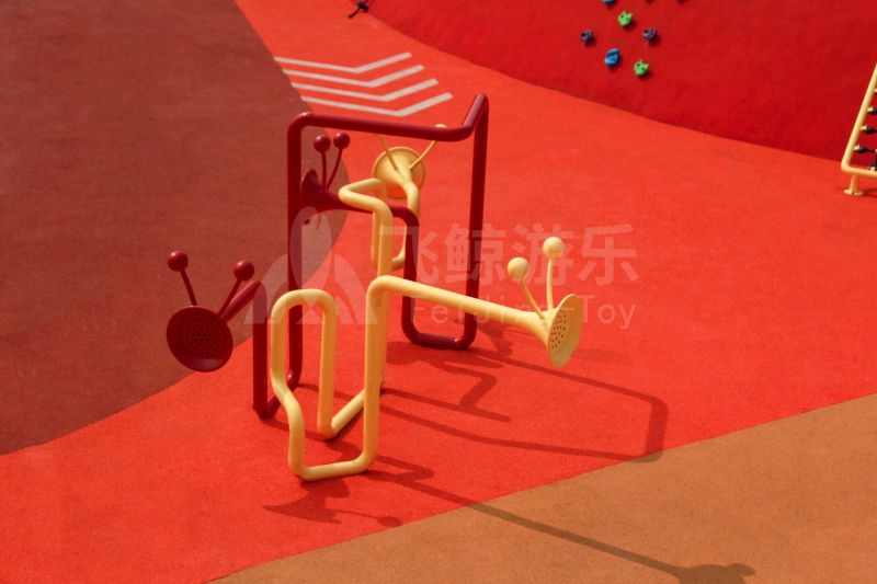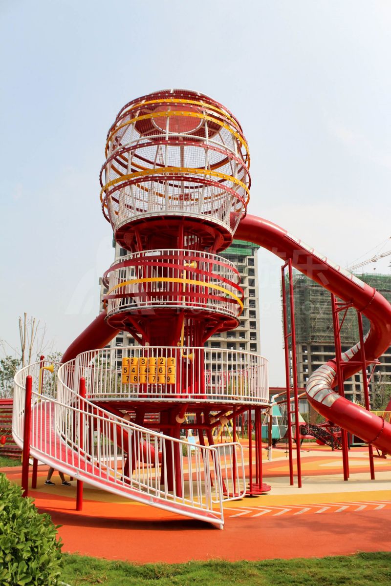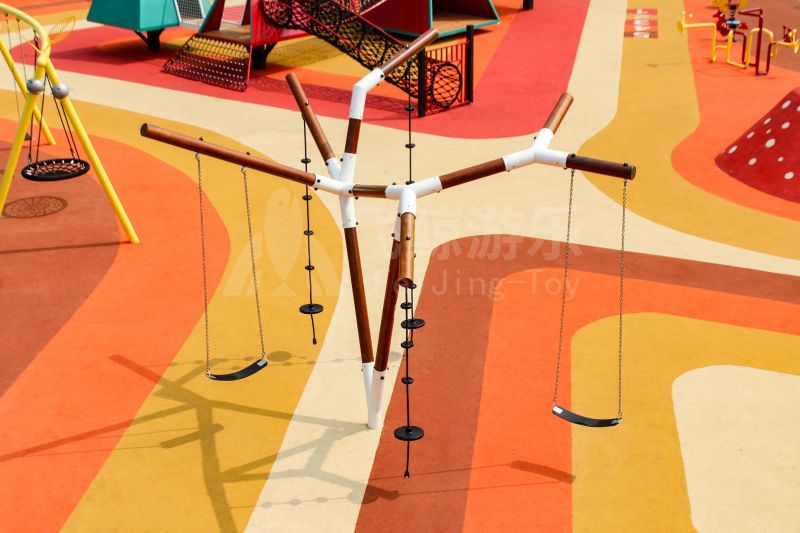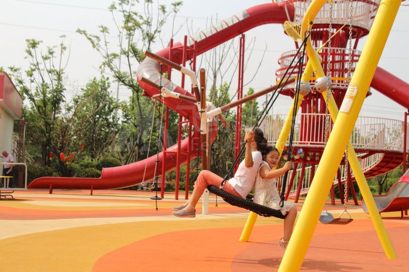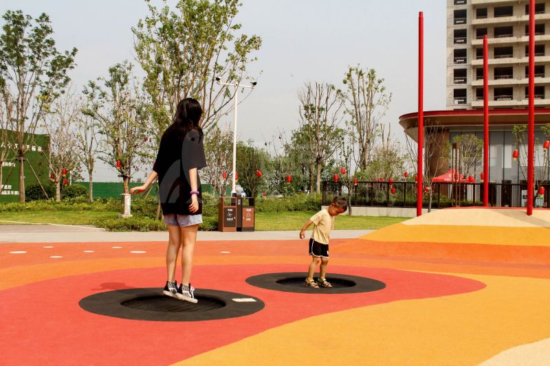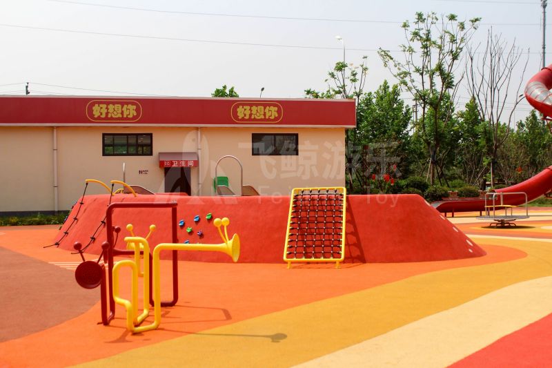 场地整体设计以集团产品“红枣”--红枣色系规划设计,彩色地绘红橙相间激发活力之情。灯塔滑梯由红枣造型设计提炼而成,白天他是火热的高塔滑梯,夜里他是闪烁美丽的灯塔。双滑梯体验不同高度滑落快乐,搭配益智小设备,北京打击乐器、数字滚筒,玩法更多样。 勾勒地形,攀登或者滑下起伏之间多一种趣味,北京爬网、攀登点、爬绳,总有一种让你体会到攀爬的快乐。精灵树屋乐趣多,攀爬至不同树屋,是属于自己秘密基地。驻足一番,看看风车,感受下夏天的风。绳网、木板、 多种材质攀爬和触摸,都在和自然对话。亲近自然的空间往往能够提供无形的吸引力,更多丰富的材料和空间,感知自然、与自然互动,能够让孩子们沉浸其中。 北京秋千荡漾着,荡起内心的欢愉、安逸。大大的鸟巢秋千,可以坐着躺着,和小伙伴背靠背也是不错选择。月亮秋千给人梦幻感觉,让荡秋千多了一种梦幻感觉。骑上摇摇车,摇呀摇,摇到记忆里最快乐的时光。远处有朵散落的云,站在云朵上,蹦蹦跳跳。 飞鲸游乐本次儿童空间设计遵循趣味性的原则,曲线宽阔的奔跑环境、丰富活泼的色彩激起儿童自在玩耍。趣味设备点缀在场地各处,让儿童主动探索发现乐趣,尽情挥洒他们的天真与烂漫。