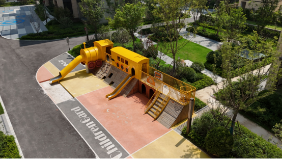 冒险小火车儿童活动区让住宅与成长共绘美好,成为住宅区最美丽的一角。