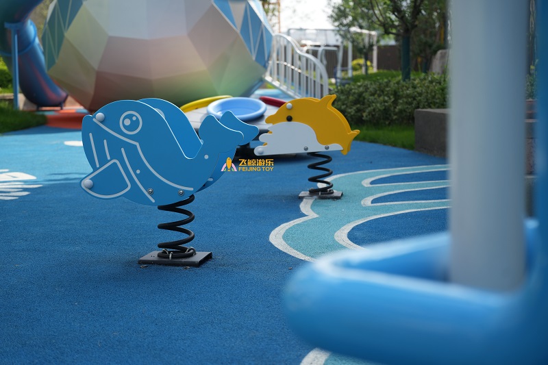 跷跷板:蓝色海豚造型可爱迷人,可幼儿乘坐,也可亲子同乐,休闲放松带来好心情。